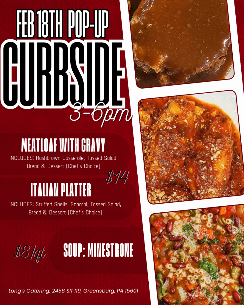 Feel free to stop by, or if you’d like to order ahead: give us a call at 724-834-0610 or message us on Social Media.